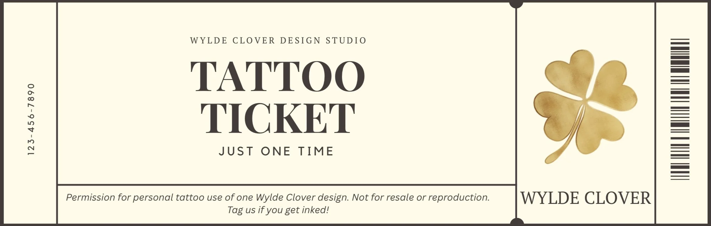 By purchasing this ticket you are supporting me as the illustrator/creator and receiving permission from me to get my art inked. I would love to see any photos of the finished piece. It is an honour to have you decorate your body with my artwork. Send your photo to alohawyldlings@gmail.com or share on instagram, tagging me at @wyldecloverstudio.